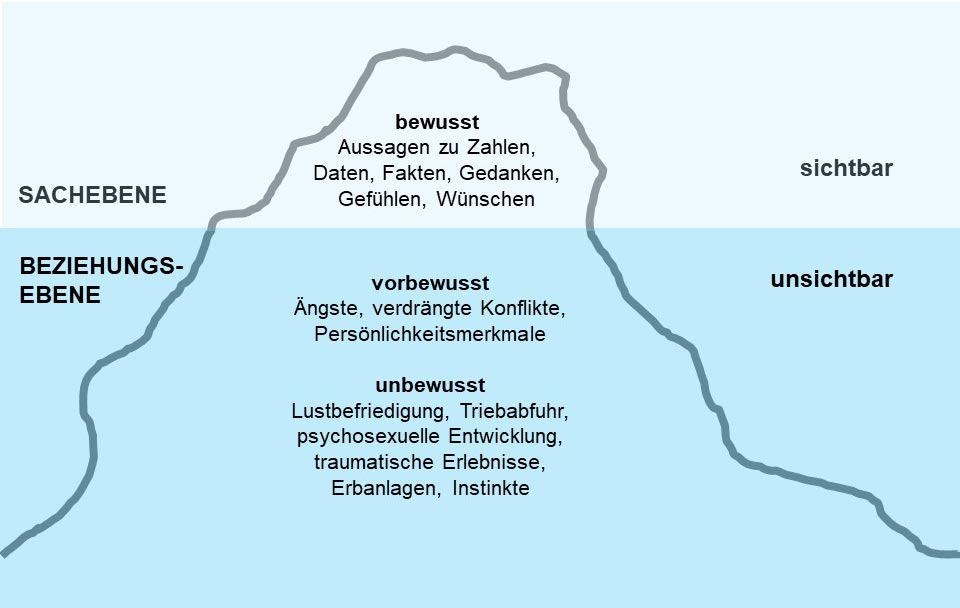 Den Bezug zur zwischenmenschlichen Kommunikation stellte der bekannte Kommunikationswissenschaftler Paul Watzlawick her. Mithilfe des Eisbergmodells beschreibt er das Verhältnis von Sach- und Beziehungsebene in der Kommunikation.