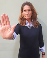 Bei eskalierenden Konfliktsituationen (streiten, aggressiver Tonfall, durcheinanderreden) setzen Sie mit dem Stopp-Handzeichen ein starkes Signal, das Sie mit einem lauten "Stopp" weiter verstärken können (siehe Bild 3).