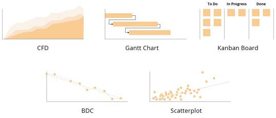 Meistens stellen wir diese visuellen Werkzeuge jedoch nicht in Frage – jeder, der in seiner Firma Kanban einsetzt, würde auch woanders mit einem Kanban-Board arbeiten und dazu evtl. noch mit einem Kummulativen Flussdiagramm (Cumulative Flow Diagram bzw. CFD) den Prozess überwachen. Ebenso sind viele Führungskräfte daran gewöhnt, ihre Planungsaktivitäten mit einem Gantt-Chart zu visualisieren. Warum auch nicht? Wir haben uns über diese visuellen Werkzeuge in cleveren Büchern informiert und uns angeschaut, wie andere sie benutzen.