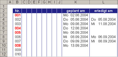 Die fertige Lösung sehen Sie in Bild 1. Bei allen nicht abgeschlossenen Aufgaben in der Tabelle wird die zugehörige Nummer in Spalte B rot und fett dargestellt. Die Funktion, die Routinearbeiten dieser Art automatisch erledigt, ist die Bedingte Formatierung. Sie müssen nur festlegen, unter welchen Bedingungen Excel die Nummer in Spalte B hervorheben soll.