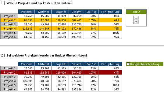 - Szenario 2: Die Projekte mit Budgetüberschreitung kennzeichnen