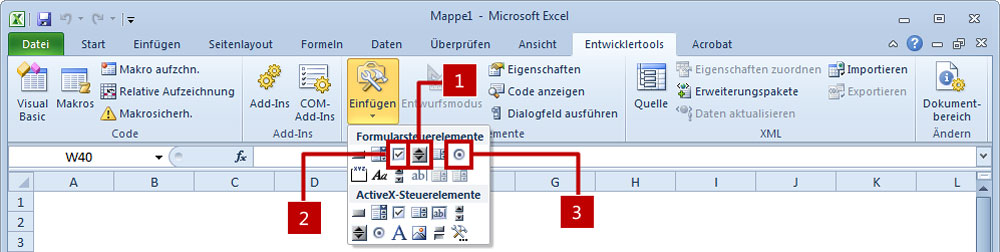Bild 2: Über die Registerkarte Entwicklertools gelangen Sie zu den benötigten Formularsteuerelementen.