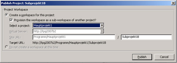 Bild 1: Erzeugen eines Project Workspace beim Veröffentlichen des Projekts.