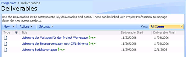In einem Project Workspace werden wie bisher Risiken, Probleme und Dokumente verwaltet, wobei aber in SharePoint 3.0 Berechtigungen nicht mehr nur für Listen vergeben werden können, sondern auch für Elemente der Listen.