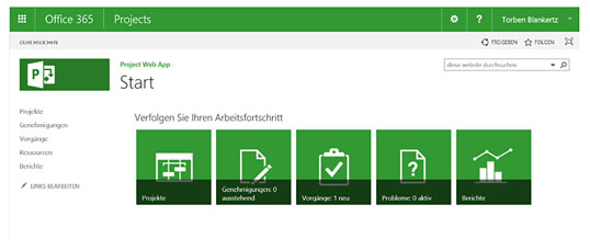 Bild 1: Zugang zu den Funktionalitäten von Project Server über die Project Web App (PWA)