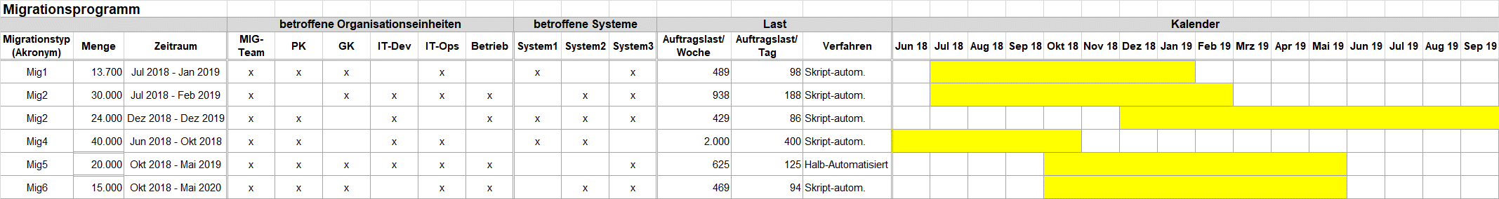 - Keine dedizierten personellen Ressourcen eingeplant für die operative Durchführung der Migrationen