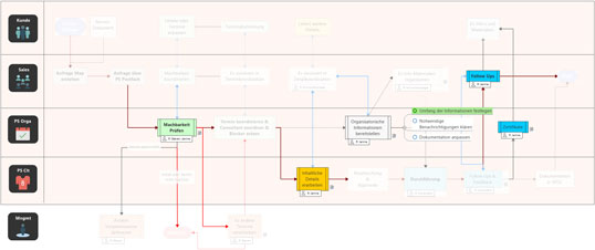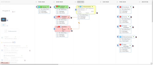 Bild 2: Mit den Aufgabeninformationen – hier phasenorientiert als Zeitachse dargestellt – wird jede Mindmap zur übersichtlichen To-do-Liste