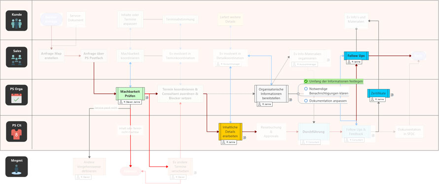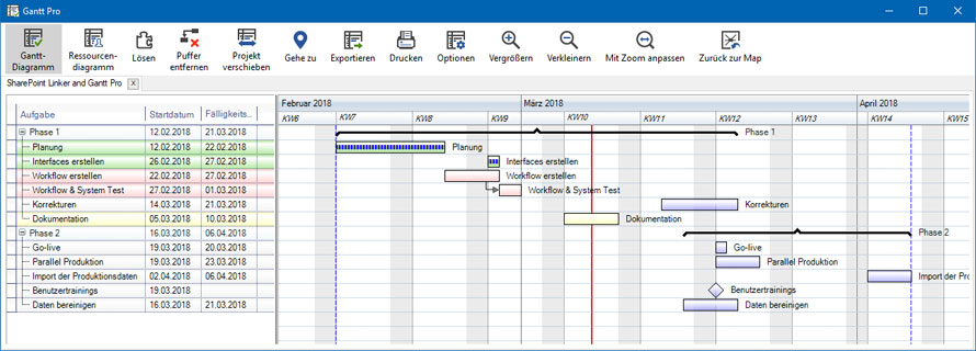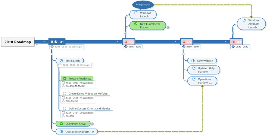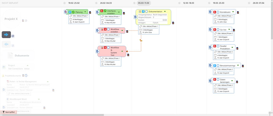 Bild 2: Mit den Aufgabeninformationen – hier phasenorientiert als Zeitachse dargestellt – wird jede Map zur übersichtlichen To-Do-Liste