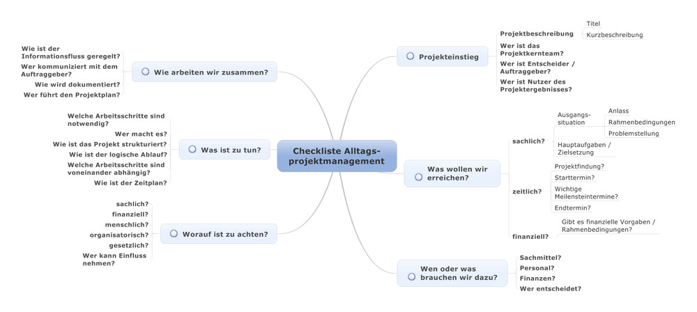 Sie haben es endlich geschafft, alle relevanten Themen für Ihr Projekt in einer Map zusammenzufassen. Doch das Ergebnis ruft bei den Betrachtern nur Stirnrunzeln hervor: "Was ist das denn?" Grund dafür ist meist, dass Sie sich beim Erstellen vor allem auf den Inhalt konzentriert und Farben, Strukturen und Bilder eher nachrangig behandelt haben. Das Ergebnis ist dann oft schwer verständlich und wenig einprägsam (Bild 1).