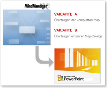 Das Programm MindManager hat sich in vielen Firmen einen festen Platz erobert, wenn es darum geht, Konzepte zu erstellen, Brainstormings durchzuführen, Besprechungen zu protokollieren oder gar Projekte zu planen und zu steuern. Dass sich vorhandene Maps ohne großen Aufwand mit bordeigenen Mitteln präsentieren lassen, ist im Artikel "Professionell präsentieren mit dem MindManager" beschrieben (Ausgabe 18/04). Doch der MindManager kann mehr: Eine seiner Stärken ist die enge Verzahnung mit Microsoft Office-Programmen, wie z.B. mit PowerPoint. Dieser Artikel beschreibt, welche verschiedenen Möglichkeiten es gibt, um eine Map nach PowerPoint zu übertragen. Er zeigt, wie Sie den Export bestmöglich einrichten und wie Sie die Maps in PowerPoint für die Präsentation optimieren. Die Bilder und Arbeitsschritte in diesem Beitrag orientieren sich an der Version MindManager X5, lassen sich aber mit wenige Ausnahmen auch auf die Versionen 4.0 und 2002 übertragen.