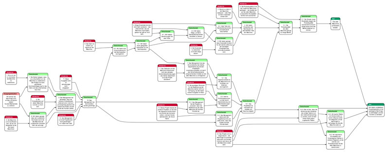 Aber ich wollte mich noch nicht geschlagen geben: Ich glaubte fest an die technische Machbarkeit, wenn die Ingenieure es nur ernsthaft versuchen würden. Die einzige Person, die Engineering überzeugen konnte, war der Werksleiter. Und der Werksleiter lachte mich nicht aus. Das Problem mit dem Kapazitätsengpass war ihm sogar wichtig genug, um mir einen ganzen Tag mit den Top-Ingenieuren zur Lösungsfindung zuzusagen, nachdem ich ihm kurz die Funktionsweise des Voraussetzungsbaums erklärt hatte.