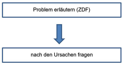 Bevor Sie die Bahnsteigfrage stellen, müssen Sie Ihrem Gesprächspartner zunächst das Problem klar beschreiben. Die Parole dafür lautet ZDF – Zahlen, Daten und Fakten als Basis für eine sachliche Erläuterung. Stellen Sie sich zur Vorbereitung die Kernfrage: Woran mache ich das Problem fest?" Beschreiben Sie das Problem anhand von Beispielen. Verstehen ist nicht das gleiche wie begreifen, darüber sollten Sie sich stets bewusst sein. Würde der Projektleiter im Beispiel zu Robert sagen: "Ich bin mit den Ergebnissen nicht zufrieden", wird Robert diese Aussage verstehen. Weiß er aber auch, was der Projektleiter damit meint? Vielleicht, vielleicht aber auch nicht. Die Aussage ist zu schwammig, da muss Fleisch an den Knochen, denn was bedeutet "schlechte Ergebnisse"?
