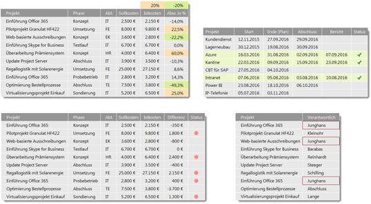 Bild 1: Beispiele für den Einsatz der Funktion Bedingte Formatierung in der Projektarbeit.