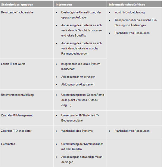 - die Finanzierung der geforderten Änderungen durch die Fachbereiche, die das System verwenden,