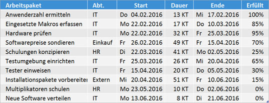 Nachdem Sie Power BI Desktop kostenfrei installiert haben (siehe Kasten), müssen Sie zunächst die Aufgabenliste aus Ihrer Excel-Arbeitsmappe importieren, die in Bild 3 dargestellt ist.
