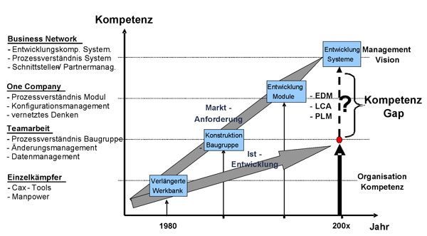 Die Produktentwicklung in Branchen wie der Automobilindustrie wird immer komplexer - eine Tendenz, die viele Firmen vor große Herausforderungen stellt. Oft versuchen sie die Komplexität zu meistern, indem sie Produktentwicklungssoftware oder -systeme implementieren. Doch diese Maßnahmen sind leider nicht immer mit dem gewünschten Erfolg gekrönt. Ein wesentlicher Grund dafür ist, dass die Unternehmen ihre Organisation nicht auf das Kompetenzniveau gebracht haben, das für eine erfolgreiche Implementierung notwendig wäre. Die Mitarbeiter sind mit dem System deshalb überfordert.