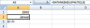 - Schreiben Sie als erstes in Zelle A1 die Jahreszahl, z.B. 2010.