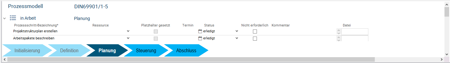 Die Software kann dieses Portfolio nicht nur auswerten, sondern unterstützt das PMO auch dabei, es aktiv zu gestalten. Zum Beispiel durch Vorlagenbibliotheken, die es dem PMO ermöglichen, komplette Projektpläne für typische Projekttypen bereitzustellen und so die Standardisierung von Projektplänen zu fördern. Projekte können außerdem einem sogenannten Prozessmodell folgen, indem für jede Projektphase bestimmte Checklisten-Aspekte vorgegeben und an einzelne Projektbeteiligte übertragen werden (Bild 6). PLANTA project wacht dann darüber, dass diese Punkte vor dem Wechsel in die nächste Phase erledigt sind.