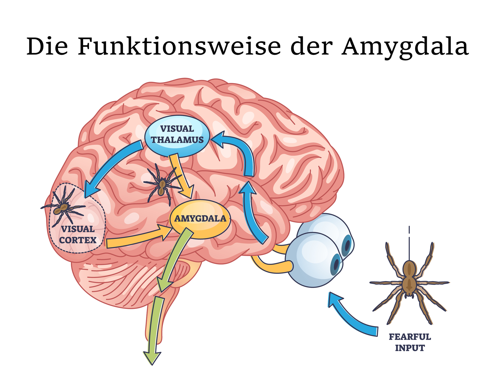 Beispiel "Spinnenphobie"Experimente in der Angsttherapie mit Menschen, die an einer Spinnenphobie leiden, veranschaulichen diesen Prozess: Nach erfolgreicher Therapie bleibt die Aktivität im Gehirn bei der Konfrontation genauso stark wie zuvor. Allerdings ist die Hirnrinde, die für die bewusste Bewertung zuständig ist, deutlich aktiver: Sie bewertet den angstauslösenden Reiz "Spinne" neu und stuft seine Gefährlichkeit herab (Ramming, 2019). |