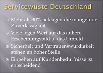 Zurzeit nimmt die Präsentationswelt Abschied von den langweiligen Aufzählungsfolien, den sog. "Bullet-Charts" (Bild 1). Der Name leitet sich vom englischen "bullet" (Gewehrkugel) ab, weil die Aufzählungszeichen oft aussehen wie Einschusslöcher. Solche "Bullet-Charts" sind beliebt, weil sie schnell zu produzieren sind: Sie öffnen PowerPoint, zählen in Stichworten alles auf und gliedern die Inhalte ein wenig. Das geht schnell und ist einfach – und ist deshalb so verlockend. Wenn es dann ernst wird, liest der Präsentierende die vielen Aufzählungen lediglich ab. Das ermüdet das Publikum ungemein. Solche Folienschlachten kann keiner gewinnen – weder Sie noch Ihre Zuhörer.