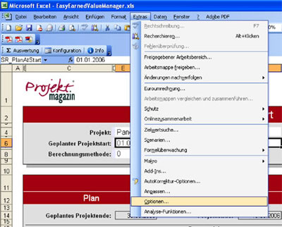 Bild 1: Um die Einstellungen für die Makrosicherheit zu ändern, wählen Sie zunächst Extras / Optionen.