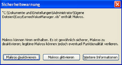- Öffnen Sie die zuletzt gesicherte Datei erneut, und bestätigen Sie die folgende Sicherheitsabfrage mit der Auswahl "Makros aktivieren".