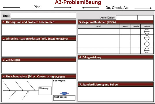 Bild 1: Mustervorlage für einen A3-Report zur Problemlösung.