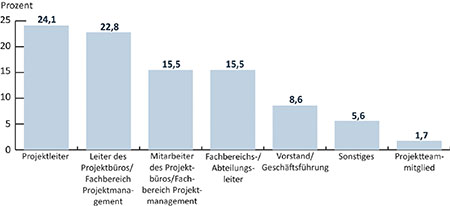 An der PMO Maturity Studie 2009 nahmen 232 Personen teil, überwiegend in leitenden Positionen (über 70%). Dazu gehörten Vorstandsmitglieder/Geschäftsführer, Leiter eines PMO und Projektleiter unterschiedlicher Branchen (Bilder 1 und 2). Zudem wurden Teilnehmer aller Unternehmensgrößen befragt - von mittelständischen Unternehmen mit einem Jahresumsatz bis 50 Mio. Euro und weniger als 500 Mitarbeitern bis hin zu Großunternehmen mit einem Umsatz von mehr als 1 Mrd. Euro und über 10.000 Mitarbeitern (Bilder 3 und 4).