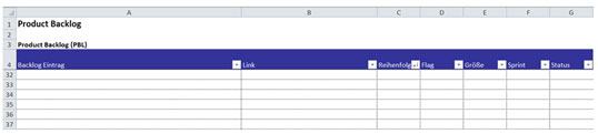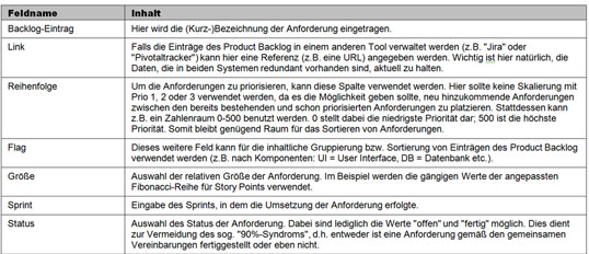 In der Registerkarte "Backlog" werden die Anforderungen des Product Backlog festgehalten (Bild 2 und Tabelle 2). Je nachdem, ob und welche anderen Werkzeuge im Unternehmen verwendet werden, sind die Daten in der Tabelle natürlich redundant und müssen aktuell gehalten werden. Hier bietet es sich an, klare Zuständigkeiten für die Pflege des Product Backlog festzulegen. Wenn man nach Scrum arbeitet, wäre hier der Product Owner dafür verantwortlich.