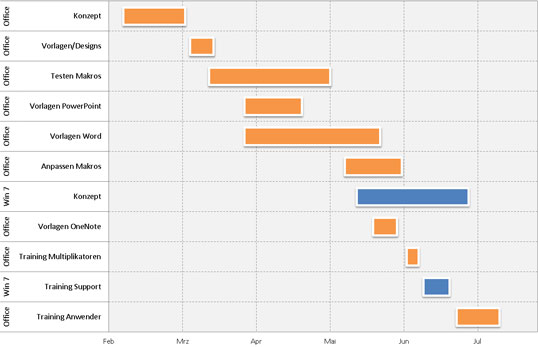 Bild 1: Vorschau auf das fertige Gantt-Diagramm, das auf Basis eines gestapelten Balkendiagramms erstellt wurde.