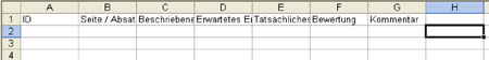 Die Inhalte der Spalte "Beschriebene Funktionalität" sollen auf der Seite der Dokumentation nachzulesen sein, die in der Spalte "Seite/Absatz" aufgeführt ist. Bei Bedarf kann so die zu testende Funktionalität schneller gefunden werden. Falls die funktionale Spezifikation in elektronischer Form vorhanden ist, können Sie die Inhalte der Dokumentation per "Cut and paste" in die Eingabemaske einfügen.