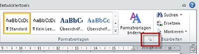 Damit hebt er sich nur wenig vom umgebenden Text ab und wird leicht übersehen. Sie können das verhindern, indem Sie den Hinweistext z.B. in einem leuchtenden Rot formatieren. Das ist im Entwurfsmodus (Entwicklertools / Steuerelemente / Entwurfsmodus) mit den üblichen Formatbefehlen möglich, einfacher ist es jedoch, Sie passen die zugehörige Formatvorlage "Platzhaltertext" an, die standardmäßig ausgeblendet ist.
