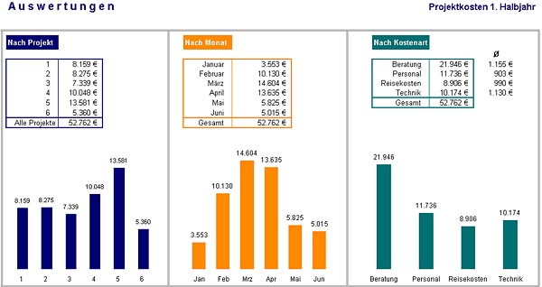 Separate Auswertung nach Projekt, Monat und Kostenart mit Tabellenfunktion