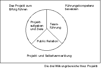 Wenn Sie Ihren Projektauftrag bewusst als Bewährungsprobe im Hinblick auf zukünftige Aufgaben im Führungsteam Ihres Unternehmens wahrnehmen, dann achten Sie bitte auf die drei zentralen Wirkungsbereiche. Vernachlässigen Sie keinen, übertreiben Sie keinen.