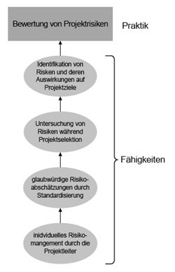 Lassen Sie uns die Praktik "Bewertung von Projektrisiken" als Beispiel betrachten. Um sie umzusetzen, müssen im Unternehmen folgende Fähigkeiten entwickelt sein (Auszug aus OPM3):