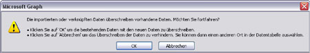 • Es erscheint ein Warnhinweis (Bild 4), den Sie mit einem Klick auf "OK" quittieren können. Daraufhin werden die bestehenden Beispieldaten in der Datentabelle durch die aus Excel ersetzt.