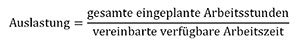 Was versteht man unter der Auslastung eines Mitarbeiters, einer Gruppe oder einer Abteilung? Es ist das Verhältnis eingeplanter Arbeitsstunden eines Mitarbeiters zu seiner vereinbarten verfügbaren Arbeitszeit (z.B. gemäß Arbeitsvertrag):