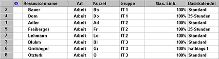 Bild 1: Stammdaten der Ressourcen (Auswahl).