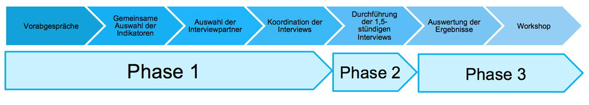 Die SCR-Analyse läuft in drei Phasen (Konzeptions- und Interviewphase sowie Auswertungsphase mit Workshop) ab: