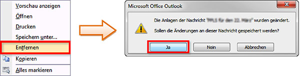 - Schließen Sie die E-Mail und quittieren Sie die folgende Speicherabfrage mit "Ja" (Bild 2).