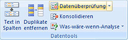 Bild 1: Befehl Datenüberprüfung unter Daten / Datentools in Excel 2007 und 2010 (Screenshot: Excel 2010).