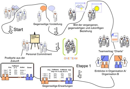 Der vorliegende zweite Teil legt den Fokus nun auf das zentrale Element in der Durchführungsphase, den zweitägigen Relationship-Alignment-Workshop. Durch die Zusammenführung der Schlüsselpersonen beider Parteien decken die Beteiligten in diesem Workshop gezielt Unstimmigkeiten zwischen den Kooperationspartnern auf und finden durch die gemeinsame Erstellung eines Maßnahmenplans Wege zur Lösung. Im Folgenden werden der Ablauf der beiden Workshop-Tage genauer beschrieben und die Übungen erklärt.