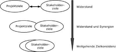 Bild 1: Durch erfolgreiches Stakeholdermanagement nähern sich Projekt- und Stakeholderziele einander an.