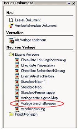 Mit guten Vorlagen erleichtern Sie sich das Arbeitsleben. Um beim gewählten Beispiel zu bleiben: Sie müssen nicht immer wieder neu überlegen, woran Sie bei einer Geschäftsreise denken müssen, sondern gehen einmal die Vorlage durch und werden an alle Informationen erinnert, die Sie sich rechtzeitig besorgen müssen.