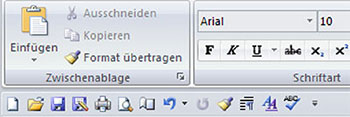 Mit Office 2007 hat Microsoft die gesamte Bedienoberfläche neu gestaltet - die Befehle sind jetzt in einer "Multifunktionsleiste" zu finden, die sich in verschiedene Bereiche unterteilt. Zusätzlich zu dieser Multifunktionsleiste hat Microsoft ein nützliches Bedienelement in die neue Office-Suite eingebaut: die "Symbolleiste für den Schnellzugriff".