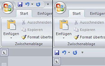 Bild 2: Die Symbolleiste über der Multifunktionsleiste (links) und darunter (rechts).