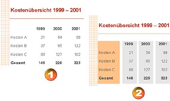 Bei professionellen Präsentationen wird die Übernahme von Excel-Objekten nicht reichen. Das Zahlenmaterial muss so aufgebaut werden, dass die Zuschauer die Informationen einzeln aufnehmen und verarbeiten können - vor allem dann, wenn die Teilnehmer der Präsentation mit den Zahlen und Fakten noch nicht vertraut sind.
