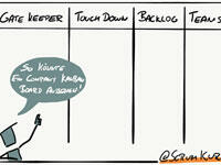 Doch die Entscheidungen bleiben aus. Zunächst fehlt die Perspektive der Teamleiter, um eine Entscheidung zu treffen. "Sehr gut!", klingt es aus einem Meeting-Raum. Die Perspektive der Teamleiter bringt das Thema voran. Doch braucht es nun doch noch einmal die Einschätzung der Product Owner zum erarbeiteten Vorschlag. "Okay, wir brauchen noch mehr Termine zur Abstimmung", ist die einhellige Meinung.
