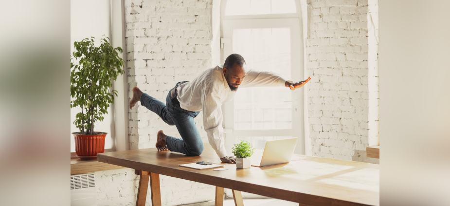 Wenn Sie regelmäßig im Homeoffice arbeiten, sollten Sie besonders auf Ihre Gesundheit achten. Denn Sie haben mit einer besonderen Herausforderung zu kämpfen: Ihre Wohnräume sind für das Wohnen statt für das effiziente Arbeiten ausgelegt. Alle Gegenstände erinnern Sie ans Abschalten und wahrscheinlich sind Ihre Möbel (z.B. Esstische und -stühle) nicht dafür ausgelegt, dass Sie daran den ganzen Arbeitstag verbringen. Daher kostet das Arbeiten von zuhause aus enorm viel Kraft. Doch schon mit einigen kurzen Körperübungen können Sie sich viel Kraft zurückholen und anschließend konzentriert weiterarbeiten.