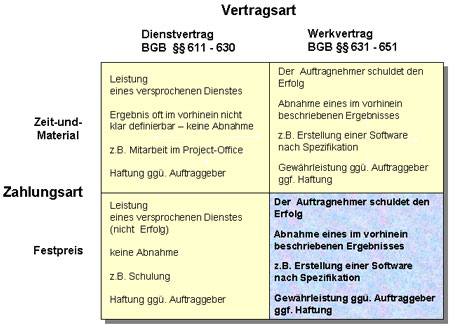 Die Vertrags- und Zahlungsarten sowie ihre Merkmale dienen nur der allgemeinen Orientierung. Im Einzelfall müssen Juristen sie vereinbaren bzw. auslegen.